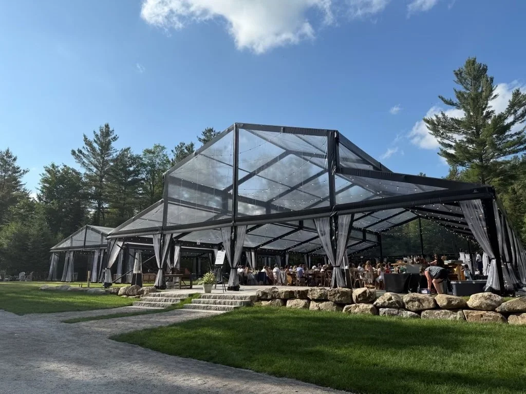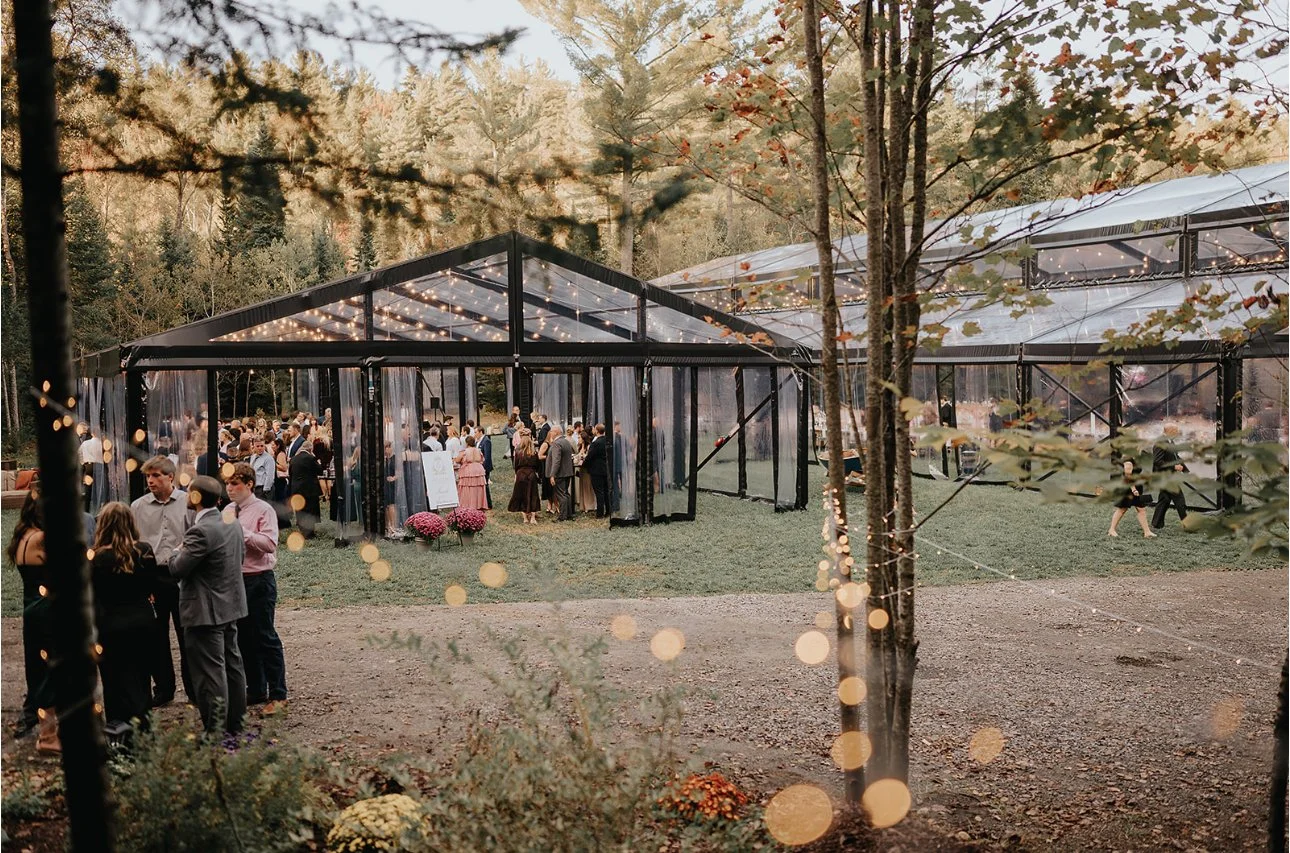 Located just moments between Lake Placid and Saranac Lake, MWE is easy to get to but easy to miss since we are tucked so carefully in the land. You and your guests will have exclusive access to our entire estate. Seal the deal on our epic ceremony lawn with 360 mountain views in the distance. Then meander down an enchanted forest path, toasting to your love, to the stunning, clear tents where you will dance the night away engulfed in nature.